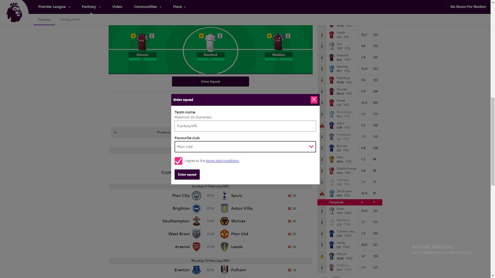 Sau khi đã hoàn thành xong công việc chọn cầu thủ, hãy ấn “Enter Squad” để chính thức ghi danh vào trò chơi.
