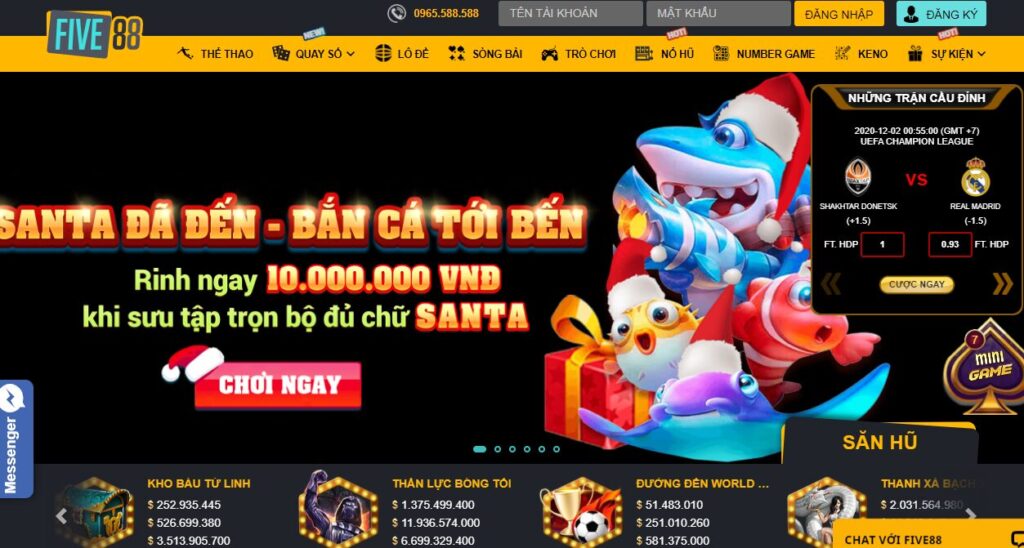 Thị trường giải trí ngày càng ngày phát triển, thì nhu cầu giải trí của anh em người chơi ngày càng cao. Chính vì vậy mà nhà cái Five88 đã xuất hiện và đáp ứng nhu cầu giải trí tăng cao hiện nay. Với những sản phẩm và dịch vụ chất lượng ngày càng cao, nhà cái này khẳng định mình cho thị trường thấy đâu mới là một địa chỉ tiêu chuẩn của các nhà cái hiện nay. Thông qua kinh nghiệm và nhiều năm hoạt động trong lĩnh vực cá cược, Five88 mang lại cho anh em một không gian giải trí uy tín, chất lượng đến từ những sản phẩm và dịch vụ được đầu tư kỹ lưỡng. Sau đây, mời anh em cùng mình tìm hiểu về nhà cái Five88 để xem đây có phải là một địa chỉ giải trí xứng đáng cho anh em không nhé.