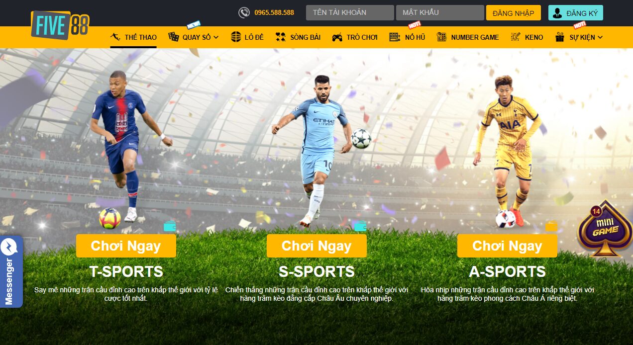 - Cá cược thể thao: với 3 sân chơi lớn lần lượt là T-Sports, S-Sports và A-Sports chuyên nghiệp do nhà phát hành của Five88 thành lập và trực tiếp duy trì hoạt động.