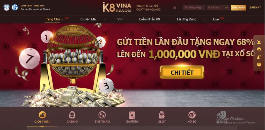 Đến với K8 anh em sẽ được tự do vùng vẫy thoải mái các thể loại cá cược nơi đây. Nhà cái này cung cấp cho anh em vô vàn thể loại cá cược hot và chất lượng hàng đầu thị trường mà anh em nào cũng đều có thể trải nghiệm. Đây là nơi anh em có thể giải trí và nhận được nhiều tiền thưởng giá trị và hấp dẫn khi cá cược.