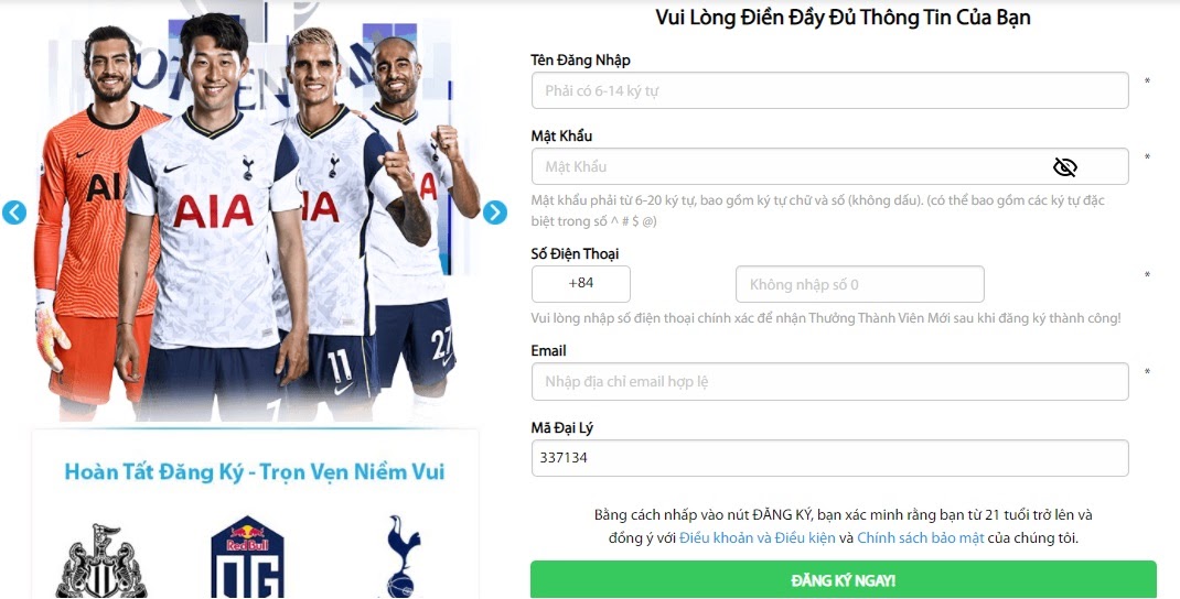 Đầu tiên anh em đặt một tên đăng nhập từ 6 đến 14 ký tự. Kế đó anh em đặt cho mình một mật khẩu đảm bảo theo yêu cầu của nhà cái. Kế đến, anh em cung cấp số điện thoại và email cá nhân để tăng độ bảo mật cho tài khoản.