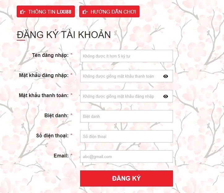 Để đăng ký tài khoản tại nhà cái Lixi88, anh em cần thực hiện những bước sau.