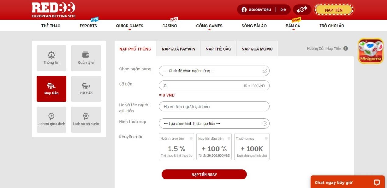 Nạp tiền tại nhà cái Red88