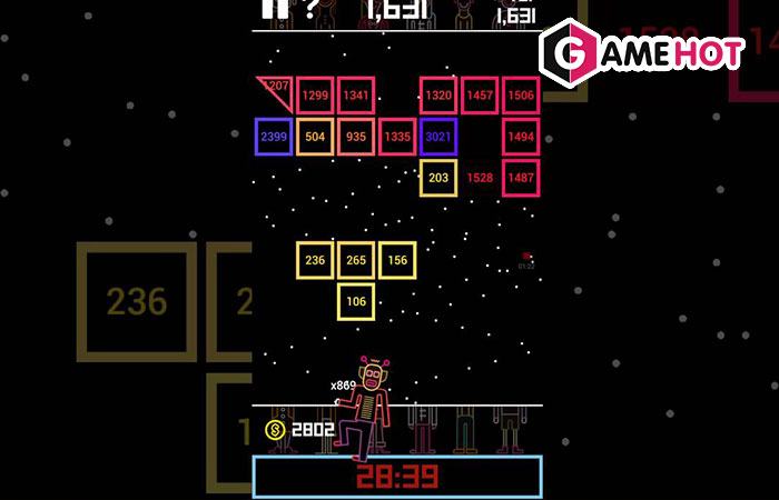 Đây là game offline nhẹ được phát triển bởi nhà phát hành 111%. Bạn sẽ điều khiển súng của mình bắn sao cho không cho những ô vuông hoặc tam giác đi xuống. Nếu để những ô vuông này chạm đáy thì trò chơi sẽ kết thúc. Ngoài cách bắn đơn thuần thì trong game sẽ xuất hiện thêm nhiều item để người chơi trải nghiệm trò chơi này dễ hơn. Trong đó dấu + giúp bạn tăng thêm số lượng bi và có tiền để mua thêm những loại bi mới. Trong đó một số item thì giúp người chơi loại bỏ đi những ô trống hơn.
