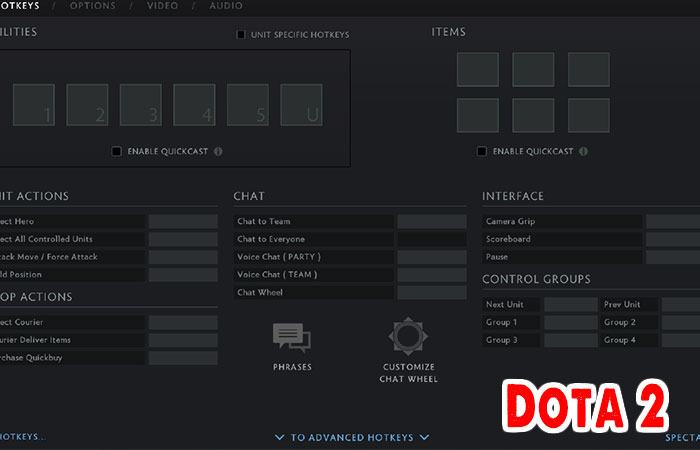 Các phím tắt dota 2 cơ bản hỗ trợ nhắn tin không cần Chat Whell